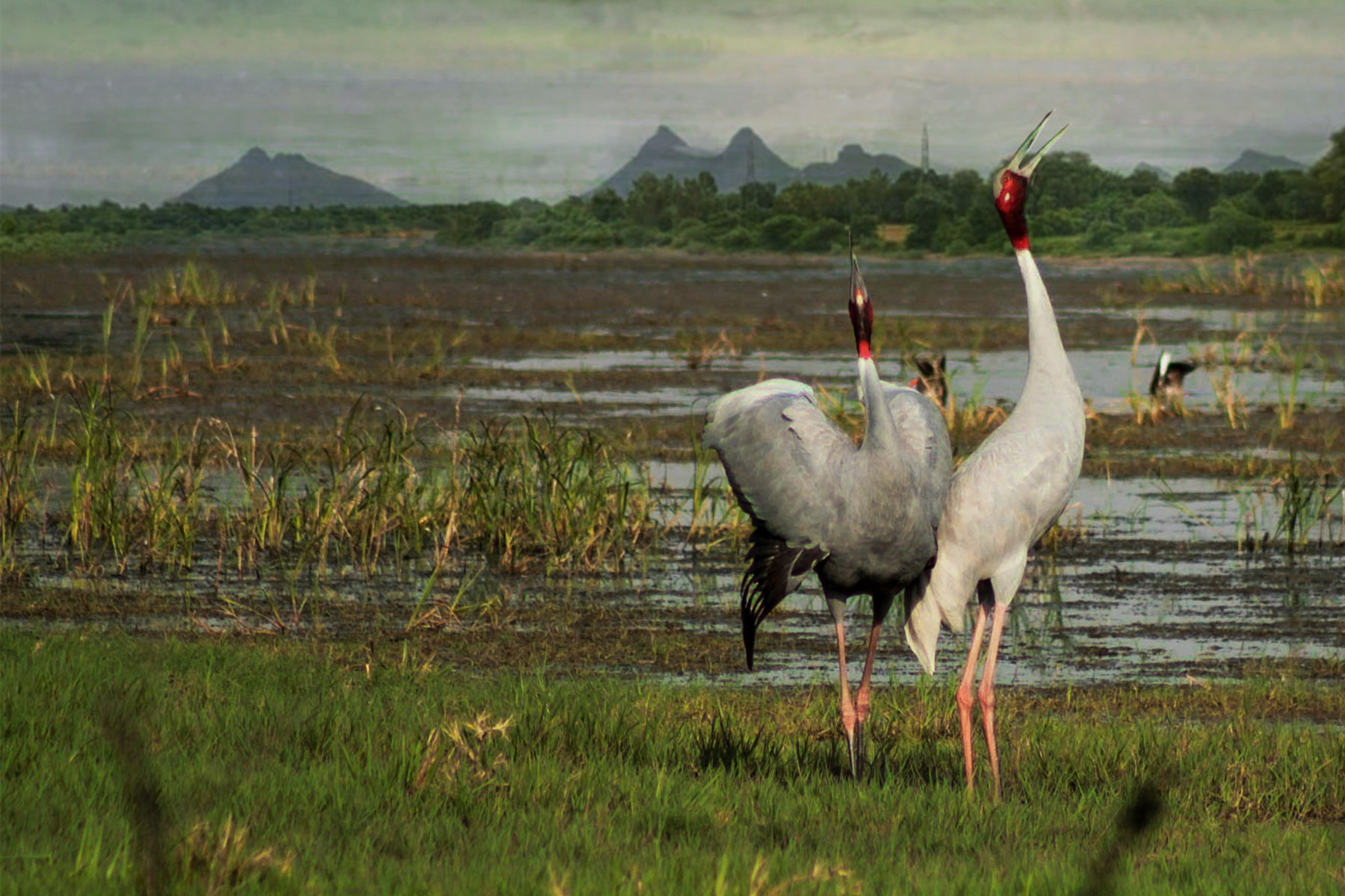 Jackals, and various bird species including Sarus cranes and flamingos. This park is famous